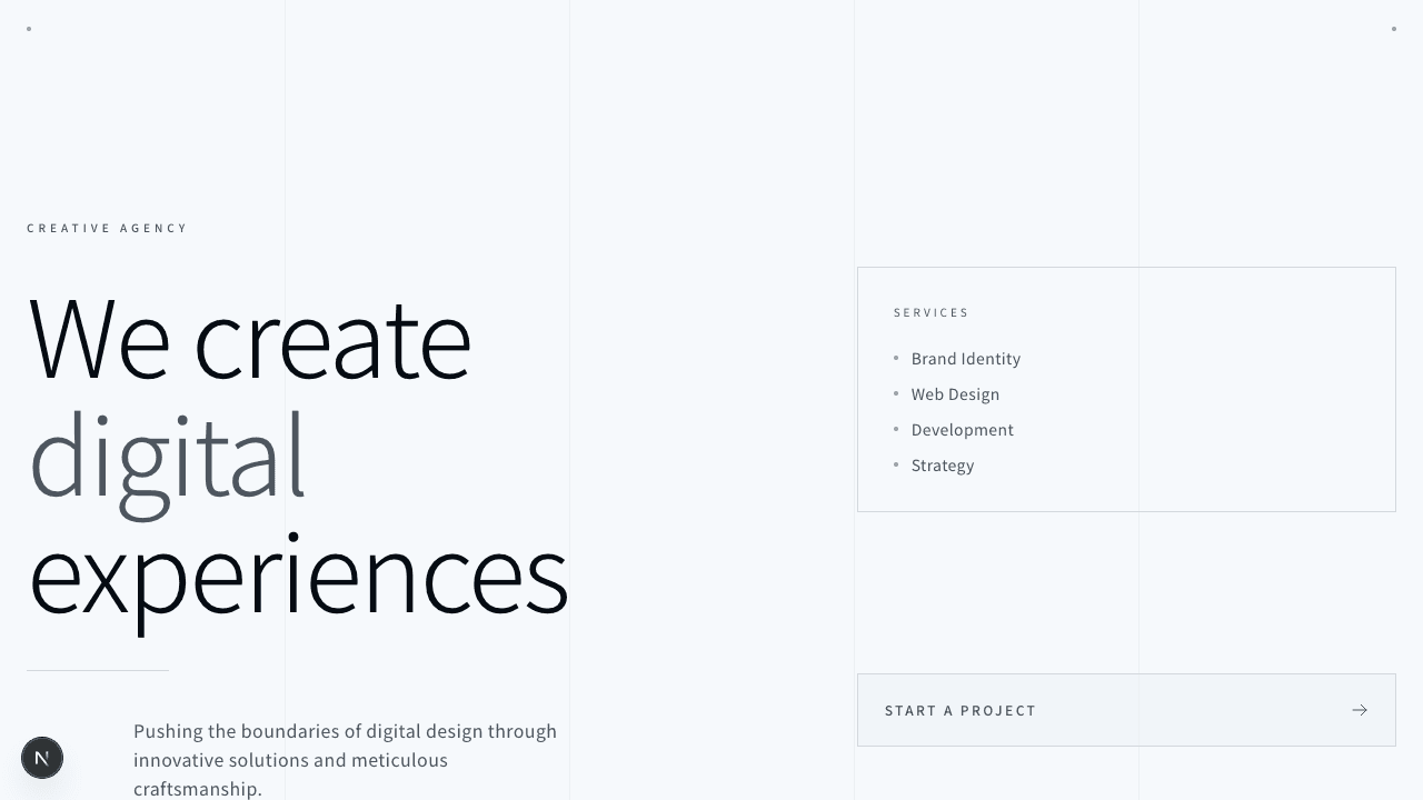 1export function HeroBrand001() {2 return (3 <section className="relative min-h-screen bg-background">4 {/* コーナードット装飾 */}5 <div className="absolute left-8 top-8 h-1.5 w-1.5 rounded-full bg-foreground/40" />6 <div className="absolute right-8 top-8 h-1.5 w-1.5 rounded-full bg-foreground/40" />7 <div className="absolute bottom-8 left-8 h-1.5 w-1.5 rounded-full bg-foreground/40" />8 <div className="absolute bottom-8 right-8 h-1.5 w-1.5 rounded-full bg-foreground/40" />910 <div className="mx-auto flex min-h-screen max-w-7xl flex-col px-6 py-8">11 {/* Top bar */}12 <div className="flex items-center justify-between border-b border-border pb-6">13 {/* Logo mark */}14 <div className="flex items-center gap-4">15 <div className="flex h-10 w-10 items-center justify-center border border-border">16 <span className="text-lg font-light text-foreground">N</span>17 </div>18 <div className="hidden sm:block">19 <div className="text-sm font-medium tracking-wide text-foreground">20 NEUTRAL21 </div>22 <div className="text-[10px] uppercase tracking-[0.2em] text-muted-foreground">23 Design Studio24 </div>25 </div>26 </div>2728 {/* Nav */}29 <nav className="hidden items-center gap-8 md:flex">30 {["Work", "About", "Services", "Contact"].map((item) => (31 <a32 key={item}33 href="#"34 className="text-[11px] uppercase tracking-[0.2em] text-muted-foreground transition-colors hover:text-foreground"35 >36 {item}37 </a>38 ))}39 </nav>4041 {/* Menu button */}42 <button className="border border-border p-3 md:hidden">43 <svg44 className="h-4 w-4 text-muted-foreground"45 fill="none"46 stroke="currentColor"47 viewBox="0 0 24 24"48 >49 <path50 strokeLinecap="round"51 strokeLinejoin="round"52 strokeWidth={1.5}53 d="M4 6h16M4 12h16M4 18h16"54 />55 </svg>56 </button>57 </div>5859 {/* Main content */}60 <div className="flex flex-1 flex-col items-center justify-center py-16">61 {/* Large brand mark */}62 <div className="mb-12 flex h-32 w-32 items-center justify-center border border-border sm:h-40 sm:w-40">63 <span className="text-6xl font-extralight tracking-tight text-foreground/80 sm:text-7xl">64 N65 </span>66 </div>6768 {/* Brand name */}69 <h1 className="mb-4 text-center text-3xl font-light tracking-[0.15em] text-foreground sm:text-4xl md:text-5xl">70 NEUTRAL71 </h1>7273 {/* Tagline */}74 <div className="mb-8 flex items-center gap-4">75 <div className="h-px w-8 bg-border" />76 <span className="text-[11px] uppercase tracking-[0.3em] text-muted-foreground">77 Design with intention78 </span>79 <div className="h-px w-8 bg-border" />80 </div>8182 {/* Description */}83 <p className="mb-12 max-w-md text-center text-base leading-relaxed text-muted-foreground">84 We believe in the power of restraint. Every element serves a85 purpose. Every detail has meaning.86 </p>8788 {/* CTA */}89 <button className="inline-flex items-center gap-3 border border-border px-10 py-4 text-xs font-medium uppercase tracking-[0.25em] text-foreground/70 transition-all hover:border-foreground/30 hover:bg-muted/50 hover:text-foreground">90 View Portfolio91 <svg92 className="h-3.5 w-3.5"93 fill="none"94 stroke="currentColor"95 viewBox="0 0 24 24"96 >97 <path98 strokeLinecap="round"99 strokeLinejoin="round"100 strokeWidth={1.5}101 d="M14 5l7 7m0 0l-7 7m7-7H3"102 />103 </svg>104 </button>105 </div>106107 {/* Bottom bar */}108 <div className="flex flex-col items-center justify-between gap-6 border-t border-border pt-6 sm:flex-row">109 {/* Location */}110 <div className="text-[10px] uppercase tracking-[0.2em] text-muted-foreground/60">111 Tokyo, Japan112 </div>113114 {/* Social */}115 <div className="flex items-center gap-6">116 {["Instagram", "Twitter", "Behance"].map((social) => (117 <a118 key={social}119 href="#"120 className="text-[10px] uppercase tracking-[0.2em] text-muted-foreground transition-colors hover:text-foreground"121 >122 {social}123 </a>124 ))}125 </div>126127 {/* Email */}128 <a129 href="mailto:hello@neutral.co"130 className="text-[10px] uppercase tracking-[0.2em] text-muted-foreground transition-colors hover:text-foreground"131 >132 hello@neutral.co133 </a>134 </div>135 </div>136 </section>137 );138}