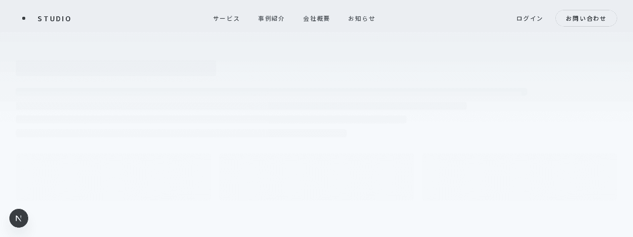 ロゴ・ナビリンク・CTAを三分割で配置したモダンなヘッダーナビゲーション。backdrop-blurで半透明効果を実現